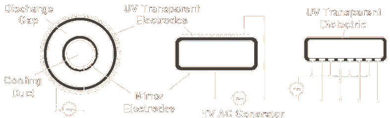 由于DBD在產(chǎn)生的放電過程中會產(chǎn)生大量的自由基和準分子,如OH、O、NO等,它們的化學性質(zhì)非?;钴S,很容易和其它原子、分子或其它自由基發(fā)生反應而形成穩(wěn)定的原子或分子。因而可利用這些自由基的特性來處理VOCs,在環(huán)保方面也有很重要的價值。另外,利用DBD可制成準分子輻射光源,它們能發(fā)射窄帶輻射,其波長覆蓋紅外、紫外和可見光等光譜區(qū),且不產(chǎn)生輻射的自吸收,它是一種高效率、高強度的單色光源。在DBD電極結(jié)構(gòu)中,采用管線式的電極結(jié)構(gòu)還可制成臭氧O3發(fā)生器。現(xiàn)在人們已越來越重視對DBD的研究與應用。