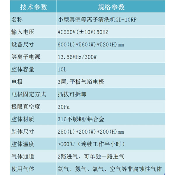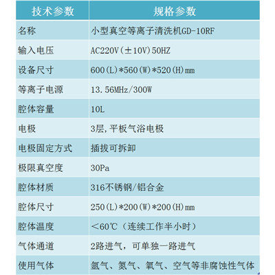 10L射頻真空等離子清洗機(jī)_實驗室等離子設(shè)備_科研機(jī)構(gòu)等離子表面處理機(jī)GD-10RF 技術(shù)參數(shù)